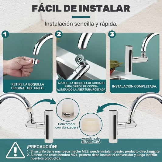 AquaMaster | Grifo 4 en 1 para Cocina con Rotación 360
